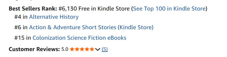 We needed to move a bunch of books in a short amount of time to make a difference. So, in hopes of getting there, I slashed the prices of all five of my eBooks from Jan 31 - Feb 7, and set the first books of the trilogy and the prequel to free.